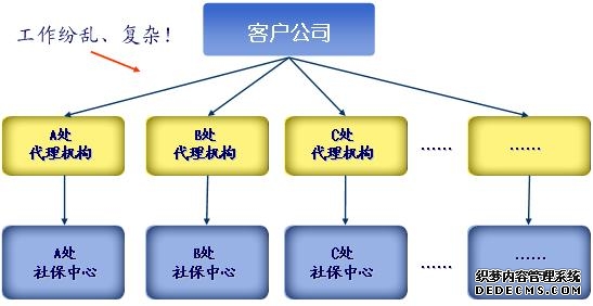 某服装企业,在全国各地很多城市都有专卖店,专卖店内店员及管理人员众多,分部在全国20多个城市共300多名。这些员工在当地的社会保险缴纳问题一直是该企业人力资源部头疼的问题。人力资源部需要与每一个城市的社保代理机构打交道,每个月光是文件往来、电话沟通就占了很大一部分工作量;而全国各地的社保法规均不相同,需要提交的材料、每个月缴纳的社保金额各式各样,需要专门的人员理顺清楚、挨个求证,是人力资源部门一直无法解决的难题。